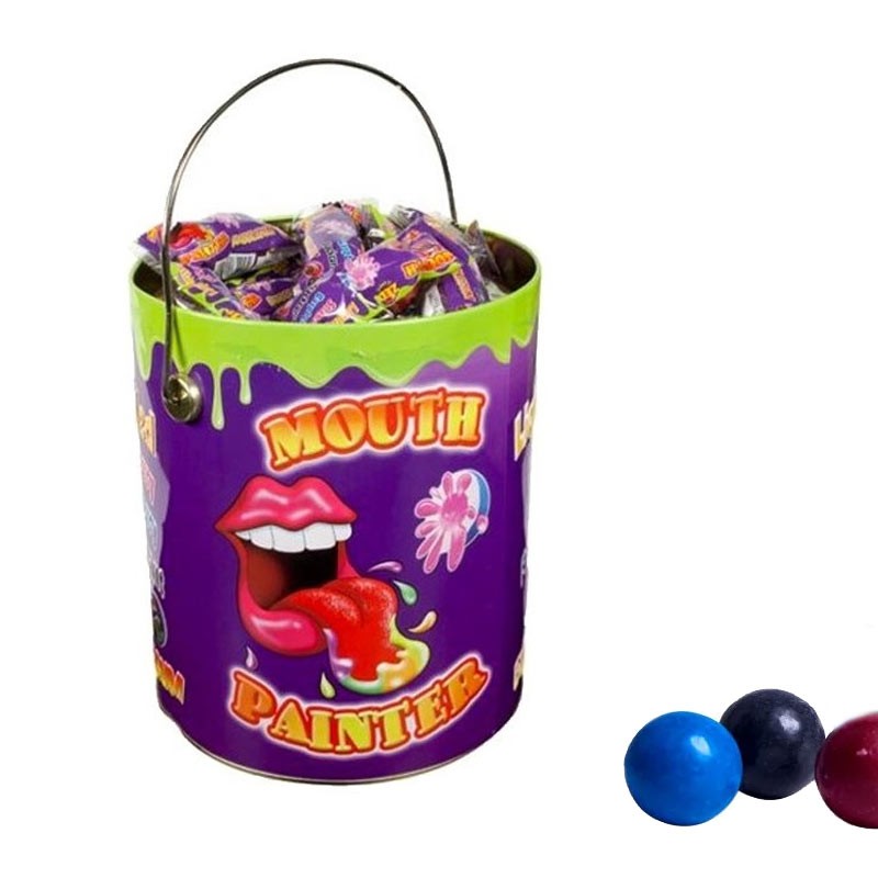 Seau en métal de 70 mini sachets qui contiennent 2 bubbles gum aux goûts et couleurs aléatoires.