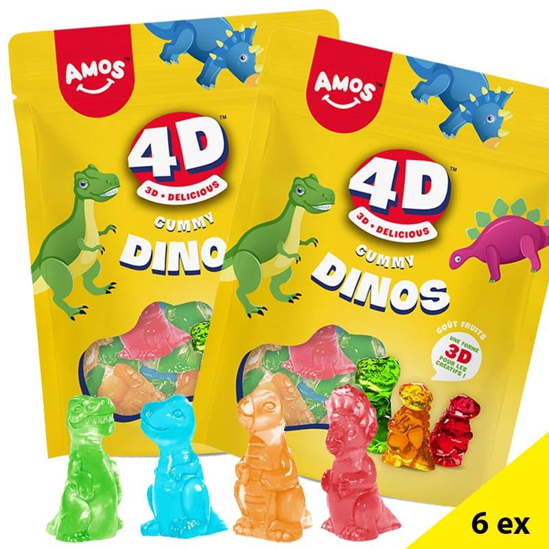 Pars à l'aventure avec les Gummy Dinos 3D, des bonbons gélifiés en forme de dinosaures super mignons ! Ces bonbons trop fun se déclinent en 4 couleurs éclatantes et 4 goûts fruités délicieux : Bleu pour la framboise,vert ananas, orange mangue, rouge cerise. Tu peux aussi les mélanger avec les Gummy Blocks, des bonbons à empiler pour créer tes propres constructions sucrées. Les sachets refermables gardent les bonbons frais et leurs saveurs fruitées plus longtemps.