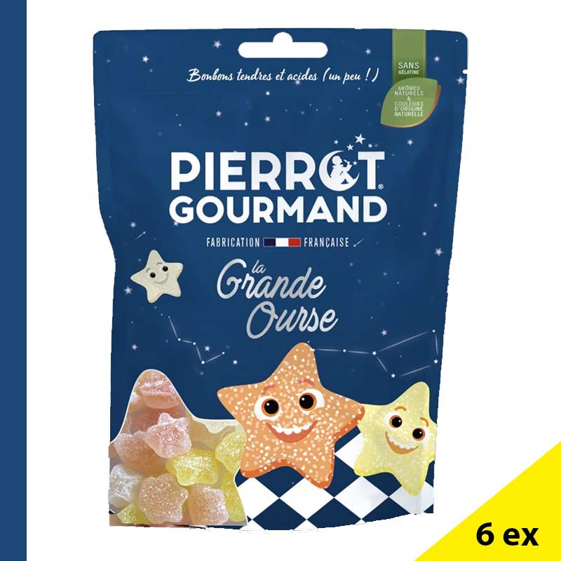 Lever les yeux vers le ciel, suivre les constellations… et maintenant les recréer en douceur ! Pierrot Gourmand vous invite à explorer l’univers sucré de La Grande Ourse, un assortiment de bonbons en forme d’étoiles, tendres et légèrement acidulés.