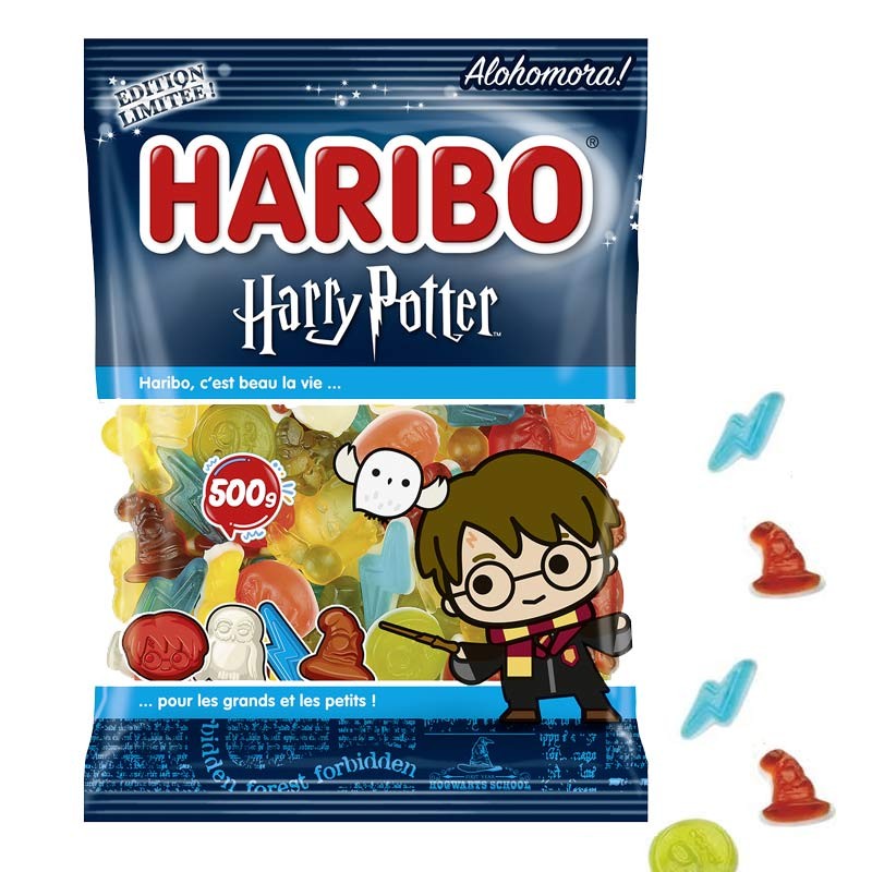 Offrez ou partagez un sachet de 500g de bonbons Harry Potter Haribo, l’alliance parfaite entre gourmandise et magie .