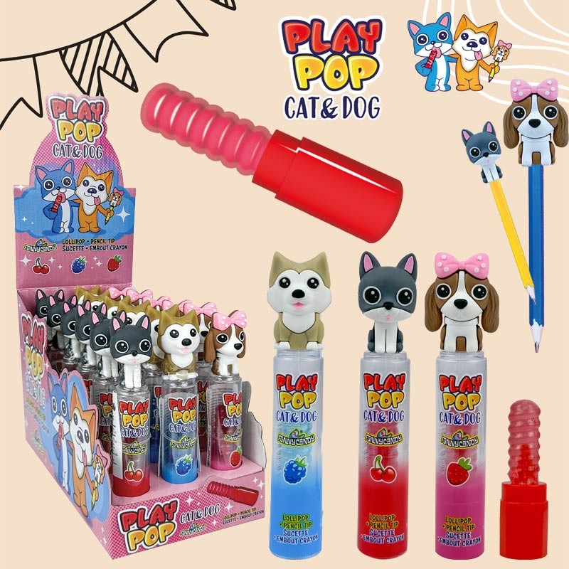 Nouveauté ! Adopte ton animal de compagnie préféré avec ces adorables figurines chien et chat. Amusantes et mignonnes, elles se transforment aussi en embouts pour crayons, parfaits pour l’école ou le dessin. Chaque figurine cache une délicieuse sucette au goût fruité : fraise, framboise ou cerise !!! Une friandise ludique et sucrée que les enfants vont adorer collectionner. Un cadeau original alliant goûter gourmand et jeu créatif !