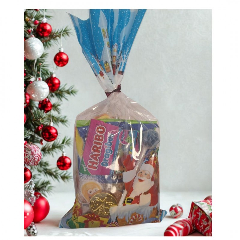 Un sachet rempli de nombreuses confiseries variéés idéal à offrir à Noël ou pour décorer votre table