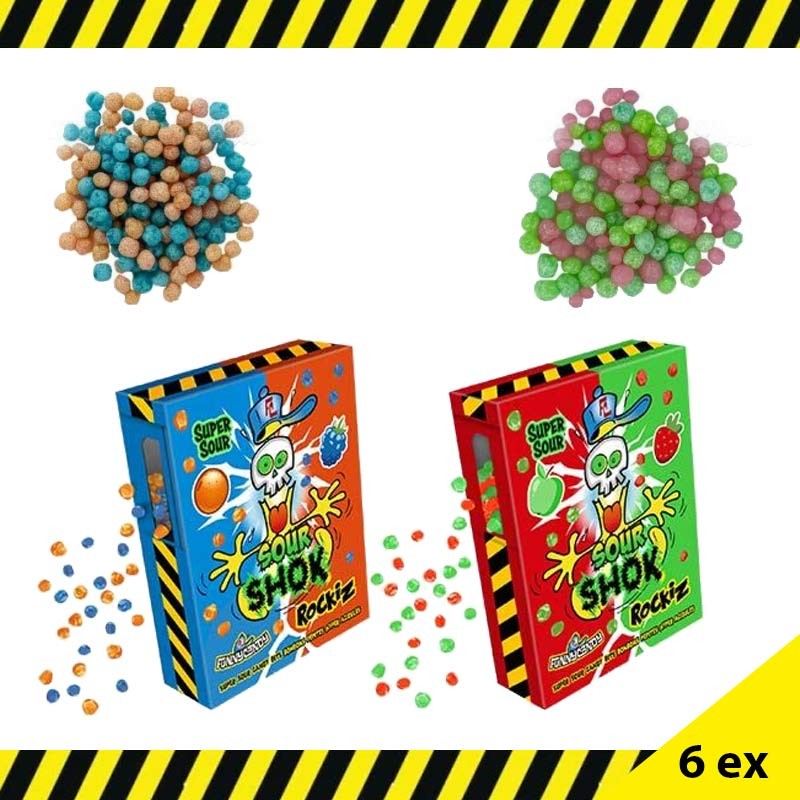 Entrez dans l’univers du bonbon super acide avec ROCKIZ, de la gamme Funny Candy SOUR SHOK. Ces pépites ultra-acidulées, à la texture croustillante puis fondante, offrent un goût acidulé explosif pour une expérience gourmande, fun et intensément percutante.