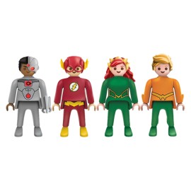 Un délicieux oeuf Kinder surprise accompagné des super-héros emblématiques et des méchants de DC Comics au format Playmobil.